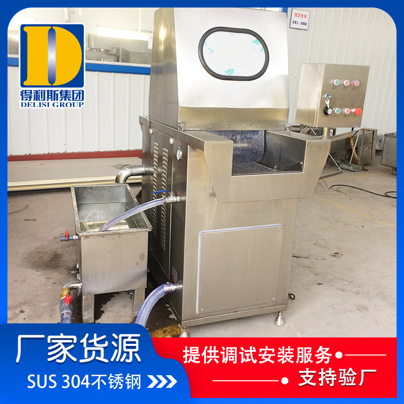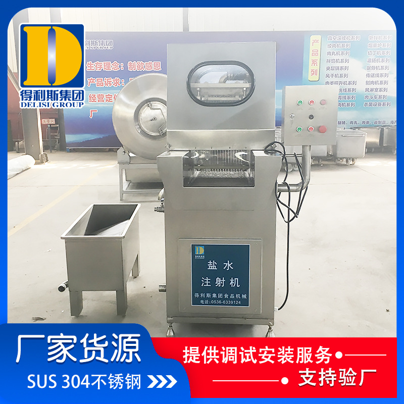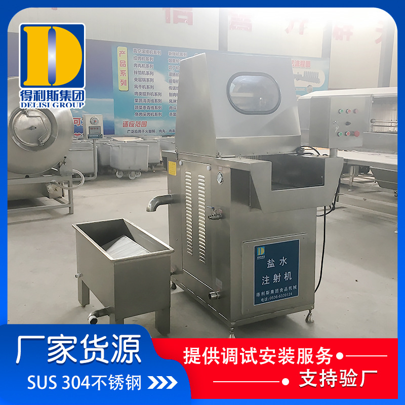 1、肉類全自動鹽水注射機采用304不銹鋼材料,選用不銹鋼泵,設計合理,維護容易。